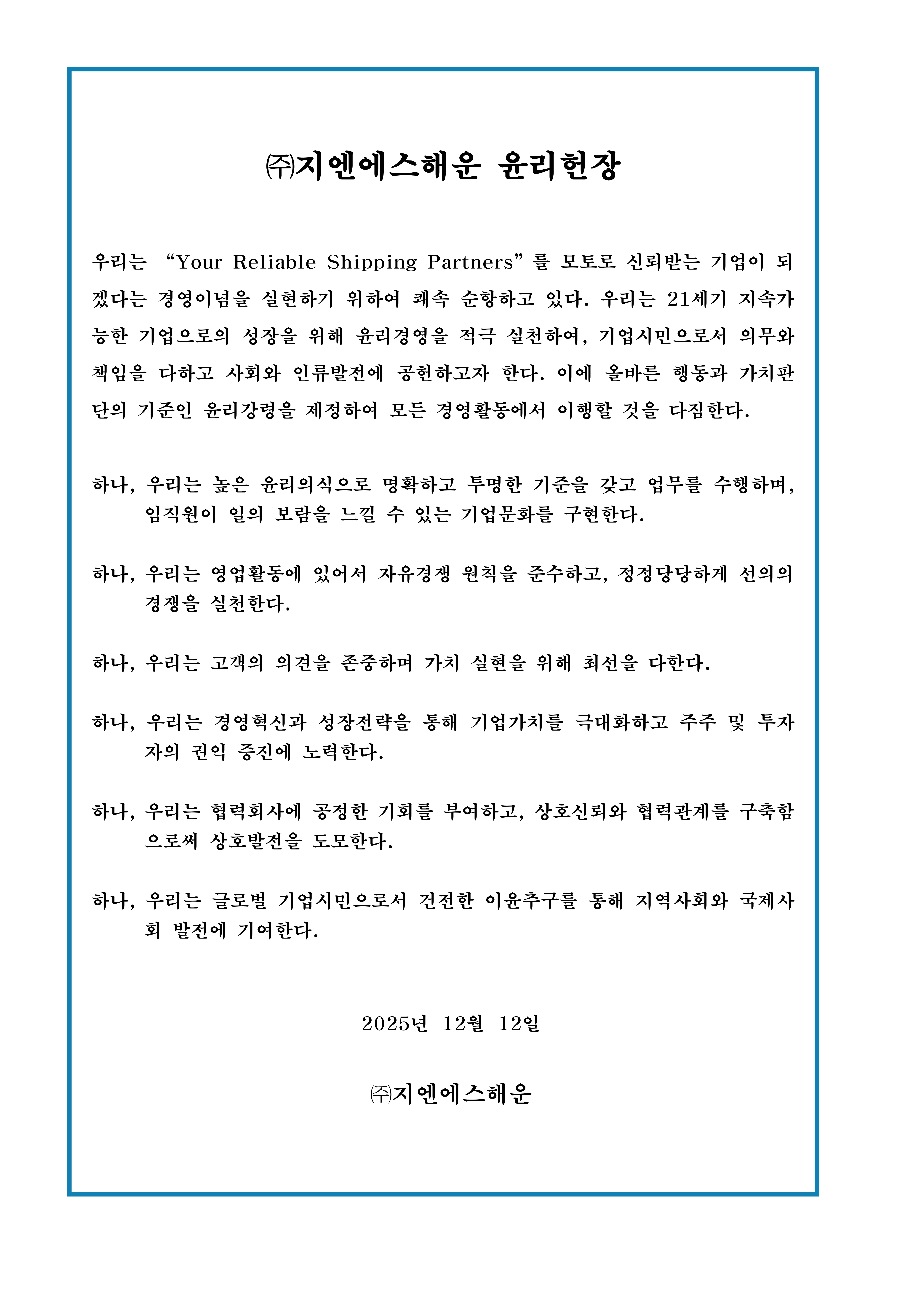 (주)지엔에스해운 윤리헌장